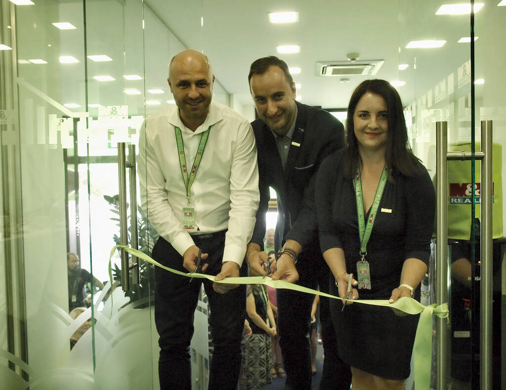 Slavnostní přestřižení pásky. Na obrázku Martin Ďuriš - výkonný ředitel M&M Investiční, Bc. Marek Ivaniš - obchodní ředitel M&M Development a Mgr. Barbora Leśniczaková - manažer IO.